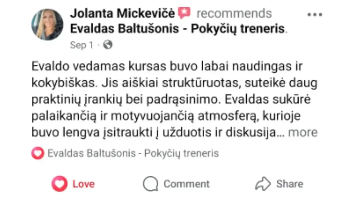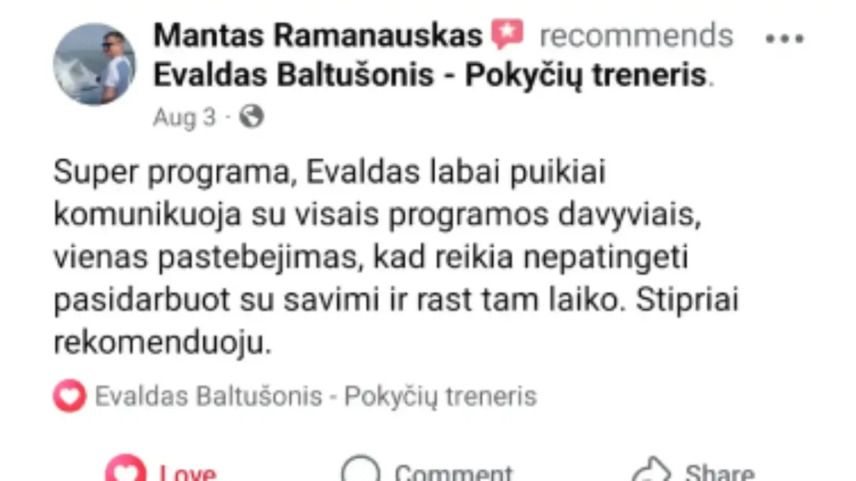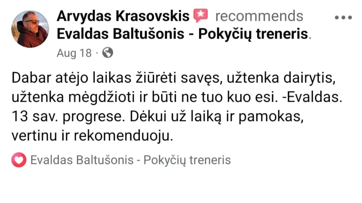 Rekomenduoju šią programą kiekvienam, kuris ieško tikros pagalbos ir nori keisti savo gyvenimą.